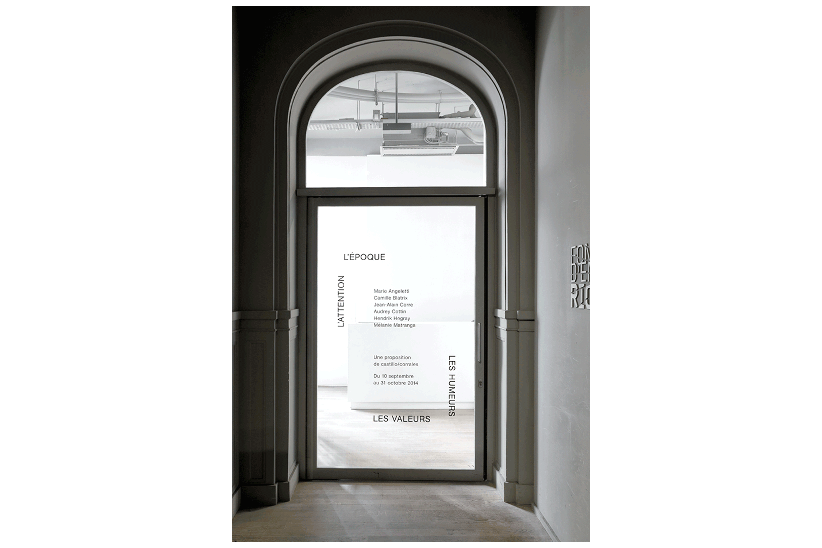 Identité visuelle de l’exposition L’Époque, les humeurs, les valeurs, l’attention, pour le 16e prix de la Fondation d’entreprise Ricard pour la jeune création, commissariat par castillo/corrales.